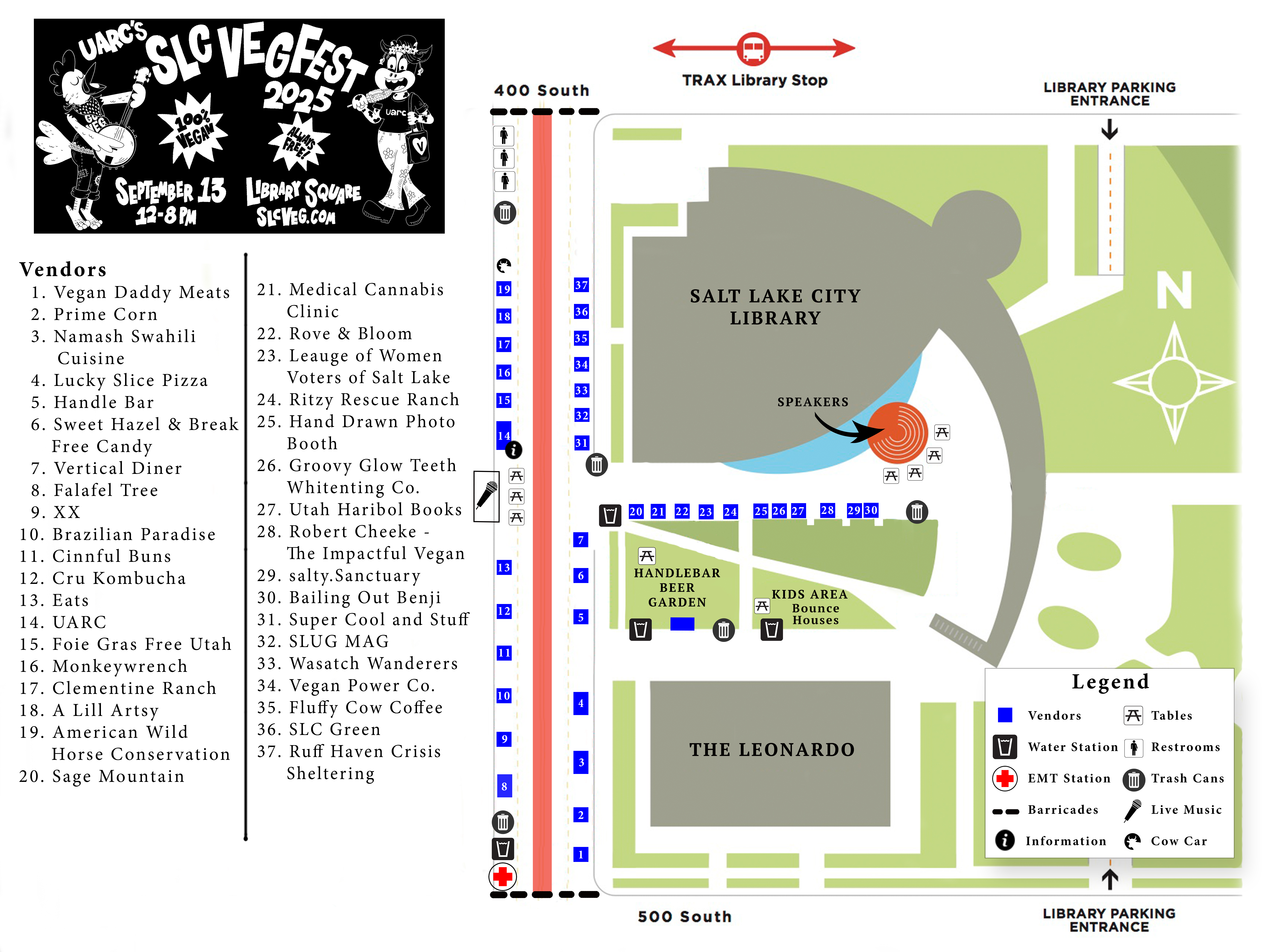 SLC VegFest is a community festival organized by Utah Animal Rights Coalition (UARC), a 501(c)3 nonprofit based in Salt Lake City. The event is free, open to the public, family-friendly, and run entirely by volunteers. The event is a celebration of veganism and plant-based eating, featuring dozens of exhibitors, most of which are local businesses.